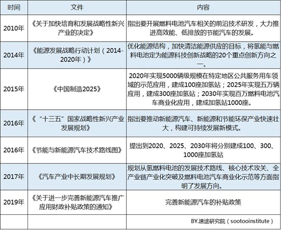 燃料電池汽車作為國家戰略重心,自然少不了政策的支持,2016年《十三五”國家戰略性新興產業發展規劃》指出,要推動新能源汽車,新能源和節能環保產業快速壯大,構建可持續發展模式。2017年工信部、發改委、科技部聯合印發《汽車中長期發展規劃》,規劃從氫燃料電池的發展路線、技術攻關及燃料電池汽車商業化示范等方面指明了發展方向。