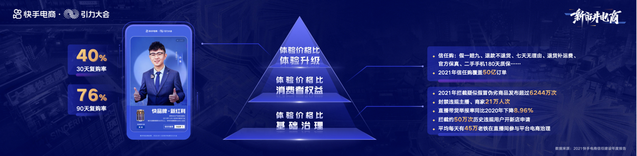 對于“大搞信任電商”,快手給出的最新定義是:通過提高“體驗-價格比”,實現消費者體驗和滿意度的躍遷。