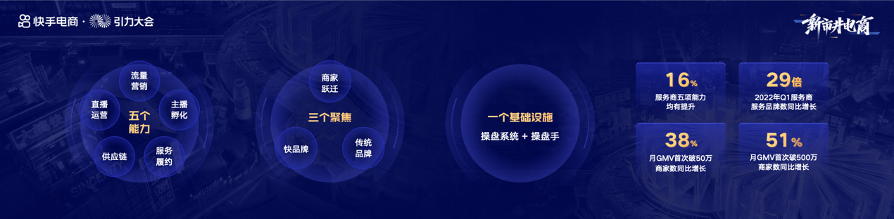 此前,快手電商提出服務商的五大能力模型,要求服務商在流量營銷、主播孵化、服務履約、供應鏈、直播運營方面有突出能力。經過一年的探索,進一步形成了以操盤系統和操盤手為核心的新的服務商基礎設施。