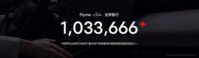 在新品發布會上,星紀魅族公布了 Flyme Auto 智能座艙系統的最新成績——生態用戶數率先突破百萬,截至 5 月 13 日用戶總量達到 1033666。
