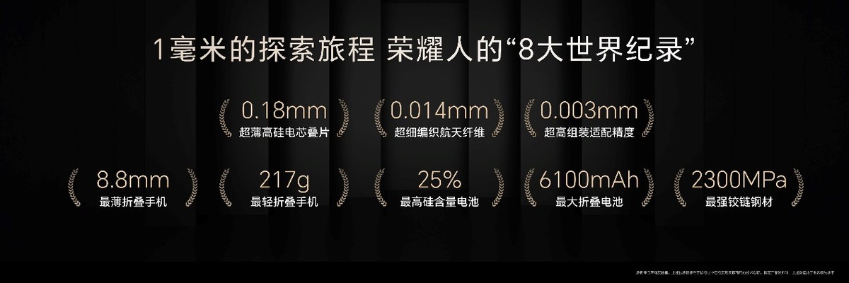 一毫米的極致探索之旅,八大“世界紀錄”背后,凝聚了榮耀在創(chuàng)新材料的研發(fā)應用、創(chuàng)新架構設計等領域體系化研發(fā)能力的突破,榮耀Magic V5打破了行業(yè)輕薄、續(xù)航、精致耐用的不可能三角。