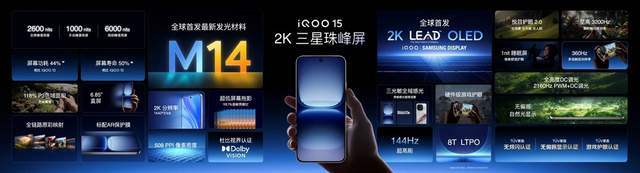 由 iQOO 與 三星深度聯合開發的 2K LEAD OLED 技術,開創性地去除偏光層,發光效率大幅提升,實現手動峰值亮度 1000nits、全屏峰值亮度 2600nits 和局部峰值亮度 6000nits 的成績,且功耗控制和DIC-P3 色域覆蓋上也表現出色。